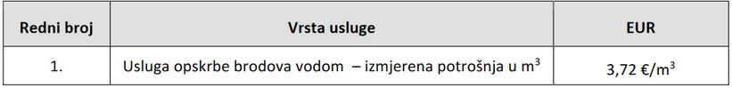Cjenik (tarifa) za obavljanje lučkih djelatnosti
