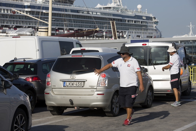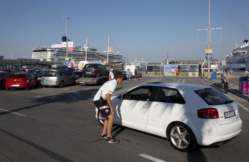 Posao prihvata i usmjeravanja vozila u svrhu ukrcaja ili iskrcaja vozila s uređenih lučkih površina obavlja se na području gradske luke Split na nekoliko označenih i uređenih parkirališta, a to su Parkiralište Vela Luka (plato ispred vezova 24 i 25), Parkiralište Šolta (plato ispred veza 23), Parkiralište Supetar (plato ispred vezova 20, 21 i 22), Parkiralište Međunarodna (plato ispred zgrade Lučkog terminala u gradskoj luci Split na Gatu sv. Duje) i Parkiralište Hvar - Vis (plato ispred vezova 10, 11, 12 i 13 na Gatu sv. Petra). Posao obavlja 9 stručnih i osposobljenih djelatnika s višegodišnjim iskustvom u obavljanju istog, a kojima u srcu sezone pomaže i 15-tak studenata zaposlenih preko Student Servisa. U svom radu djelatnici se koriste VHF uređajima marke ICOM preko kojih komuniciraju kako međusobno tako i s korisnicima naših usluga.